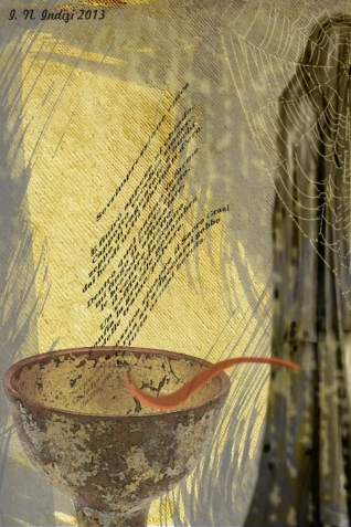 La meta per chi vive è un involucro consumato dal tempo in cui resta qualche segno di noi, profumo o polvere che sia. Le cose parlano. Forse soffrono per la nostra assenza. Voglio indagare. Così ho veramente appeso un cappotto vecchio in un angolo buio della casa. Ritorno spesso a lui, come in pellegrinaggio. E ricordo. E mi fingo la bella forma che era mia. Fingo coscientemente. Penso che quando morirò mi ci infilerò dentro e proverò ad adattarmi ritagliandomi uno spazio tra cuciture lise e porporina dorata di tarme. Fatta di niente in un tessuto di velina. Per tramandarmi ironica al popolo delle celle minime della sostanza eterea.